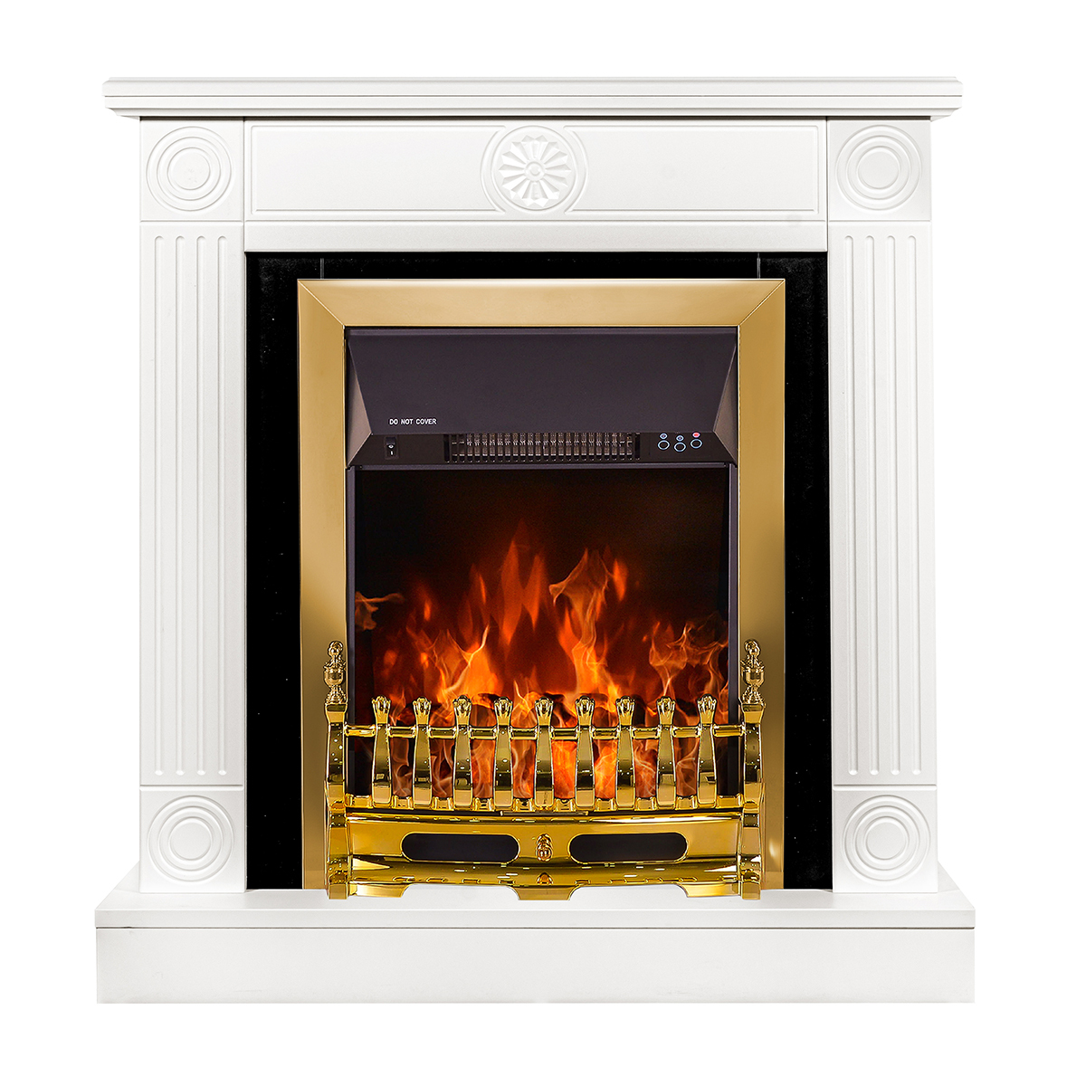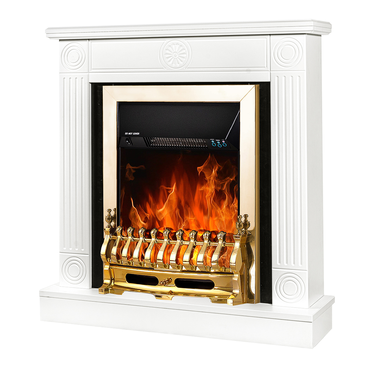 Electric fireplace "Galileo Gold" is made in a light design with a golden fence and frames. The device is capable of operating in 2 modes: in decorative mode and heating mode. In decorative mode, the device creates a cozy atmosphere with a high-quality simulated flame, the brightness of which can be changed using the remote control that comes with the kit. In heating mode, the electric fireplace is able to heat a room of 20m2. Overheating protection is responsible for the safety of the fireplace.