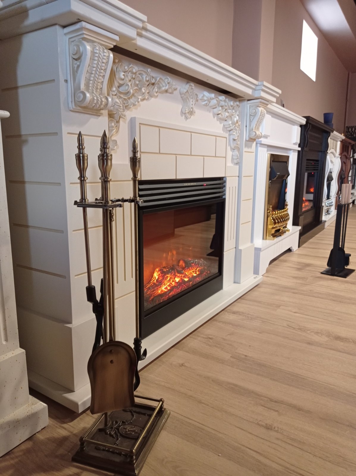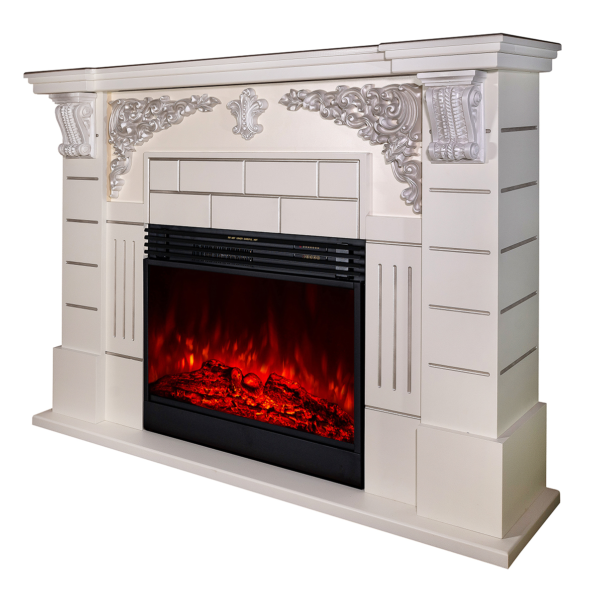 The Imperial & Mirabela fireplace set will become the pearl of your home. Portal Imperial perfectly combines classic and modern styles. It is made in white color with vanilla patina with an elegant frame on the columns. High-quality imitation of the flame of the Mirabela electric fireplace will give you a great feeling of comfort. The functionality of this model allows you to use the flame simulation mode separately from the heating mode, it has a remote control panel and an auto-off timer.