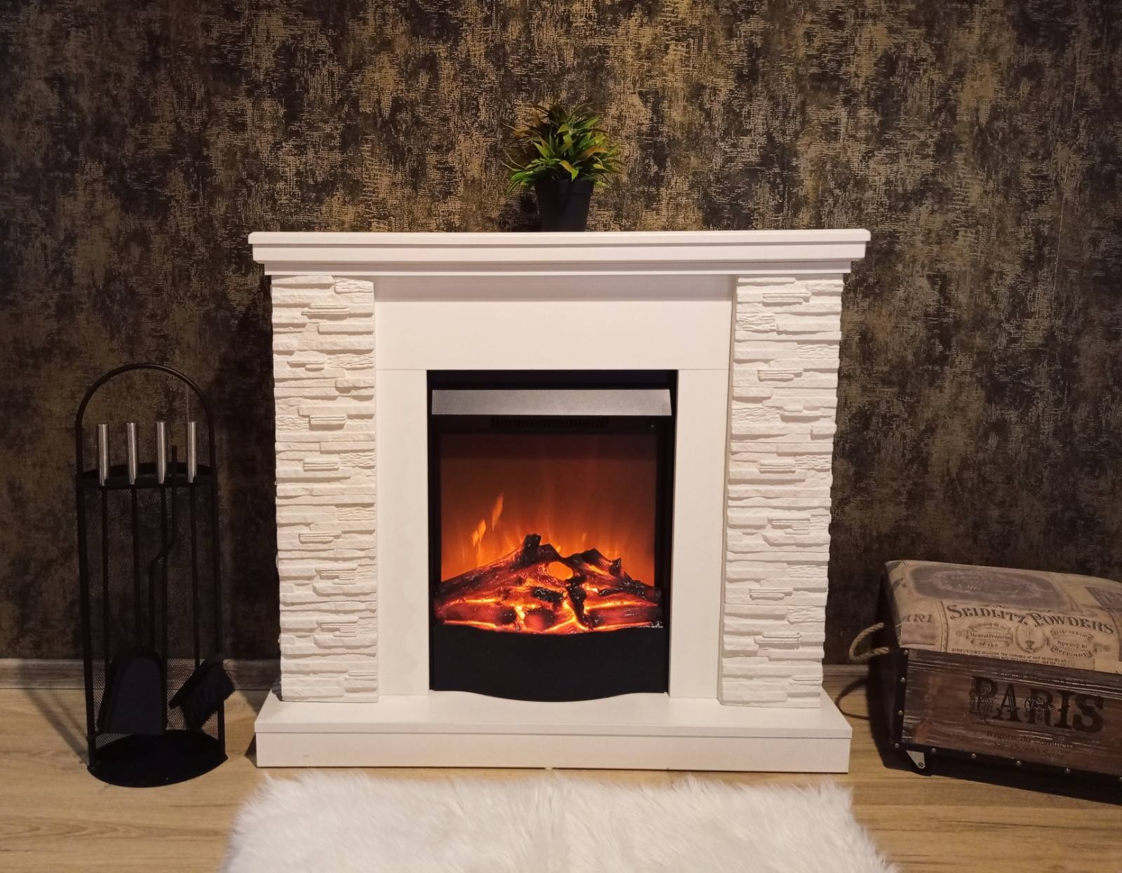The Rock & Corsica fireplace set will perfectly fit into a country house or apartment. Portal Rock perfectly combines classic and modern styles. Made in white and wenge with artificial stone on the columns. High-quality flame imitation of electric fireplace Corsica, will give a great feeling of comfort. The functionality of this model allows you to use the flame simulation mode separately from the heating mode, it has a remote control panel and an auto-off timer.