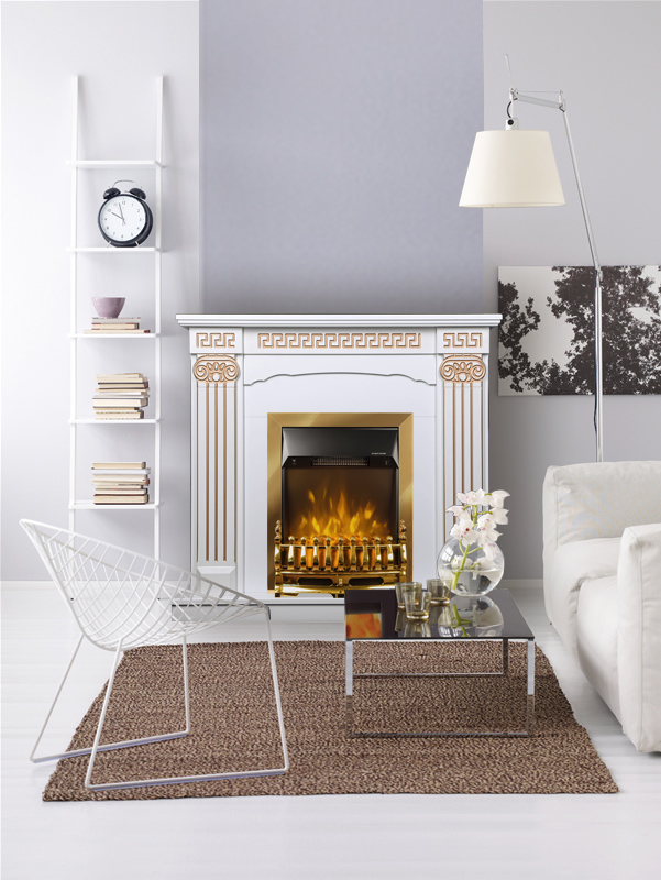 Fireplace sets offer quality and durability with high standards, with a wide range of products. Fireplace sets do not require special installation skills, as they are delivered assembled and ready for use. Calisto & Galileo gold fireplace set will be a wonderful decoration of your home. The Calisto portal is made in classic style, with elegant lines with golden patina. The high quality imitation of the flame of the Galileo gold will give you great comfort. The functionality of this model allows you to use the flame separately from the heating mode, having a remote control with the automatic timer function.