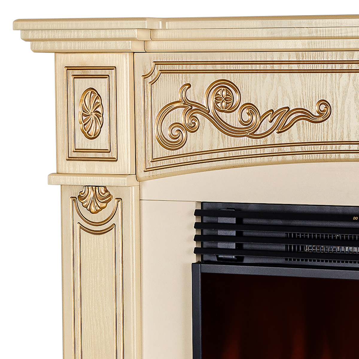 The Marmaris & Mirabella fireplace set from the European brand Art Flame is high quality, original design and the widest range in Ukraine. The Marmaris & Mirabella fireplace set will be a wonderful decoration for your home. The portal of Marmaris is made in a classic style with elegant patterns of golden patina. High-quality imitation electric fireplace flame, will give a great feeling of comfort. The functionality of this model allows you to use the flame simulation mode separately from the heating mode, it has a remote control panel and an auto-off timer.