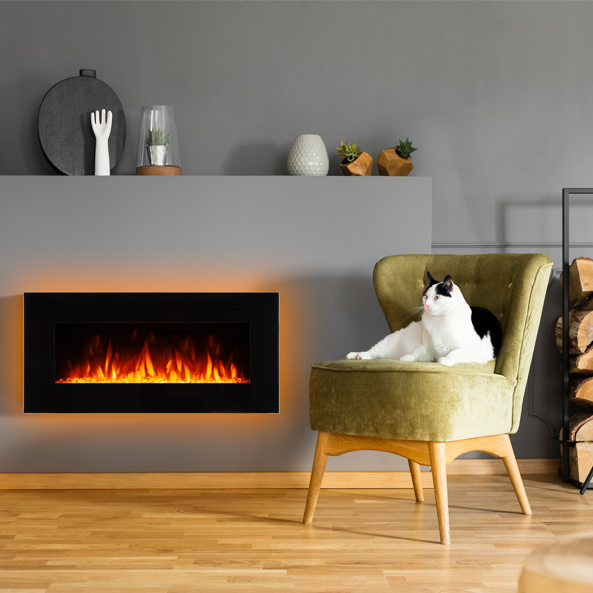 Hlavná stránka Elektrické krby Nástenný Nástenný elektrický krb Pebble, Art Flame, 508x1067x120 mm, 1500 W, 10 farieb podsvietenia, 5 Intenzita plameňa, Časovač