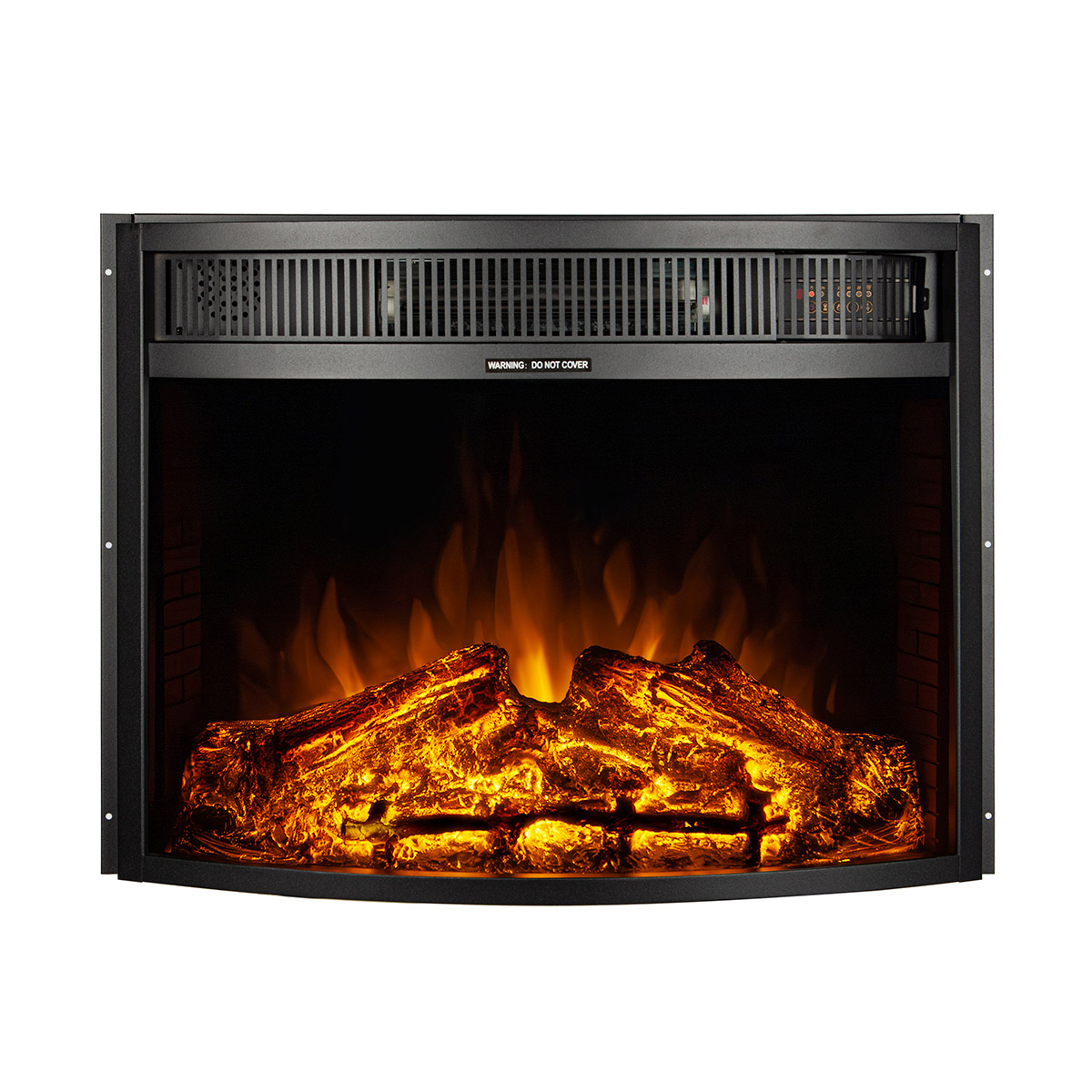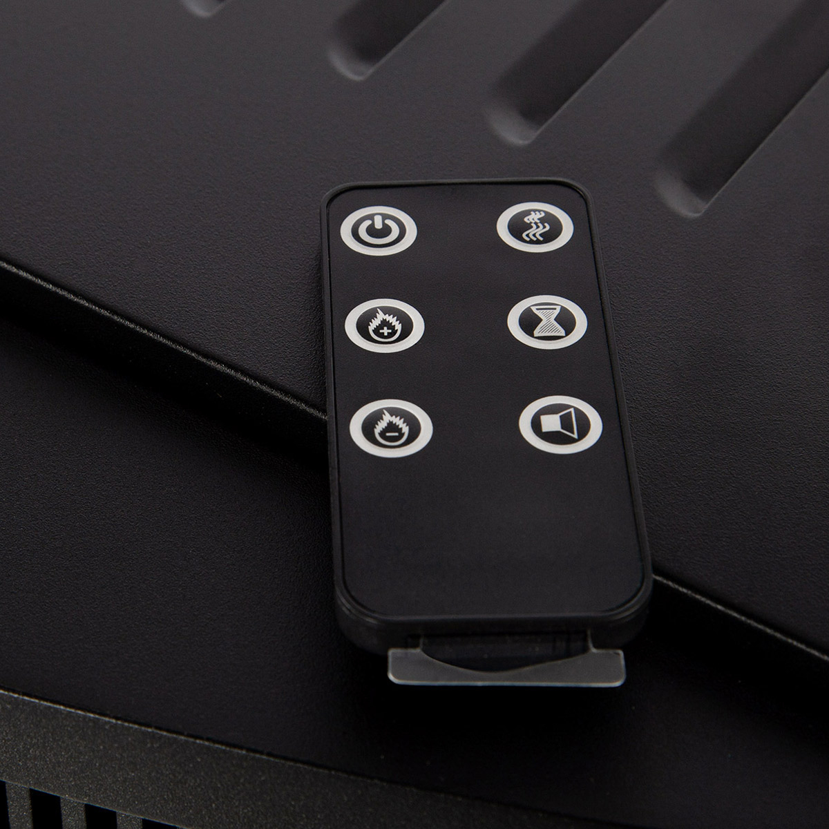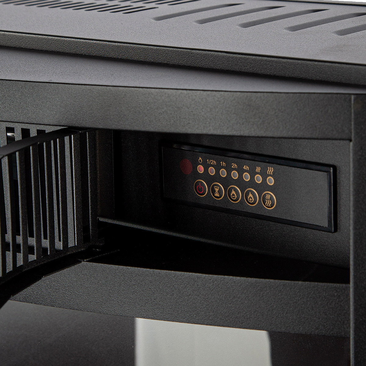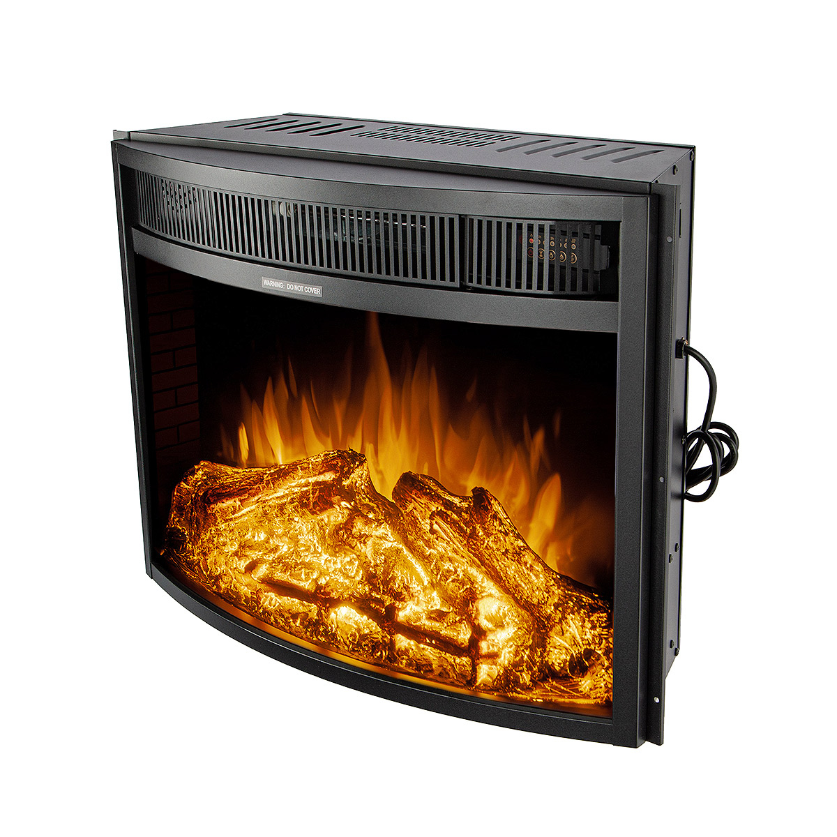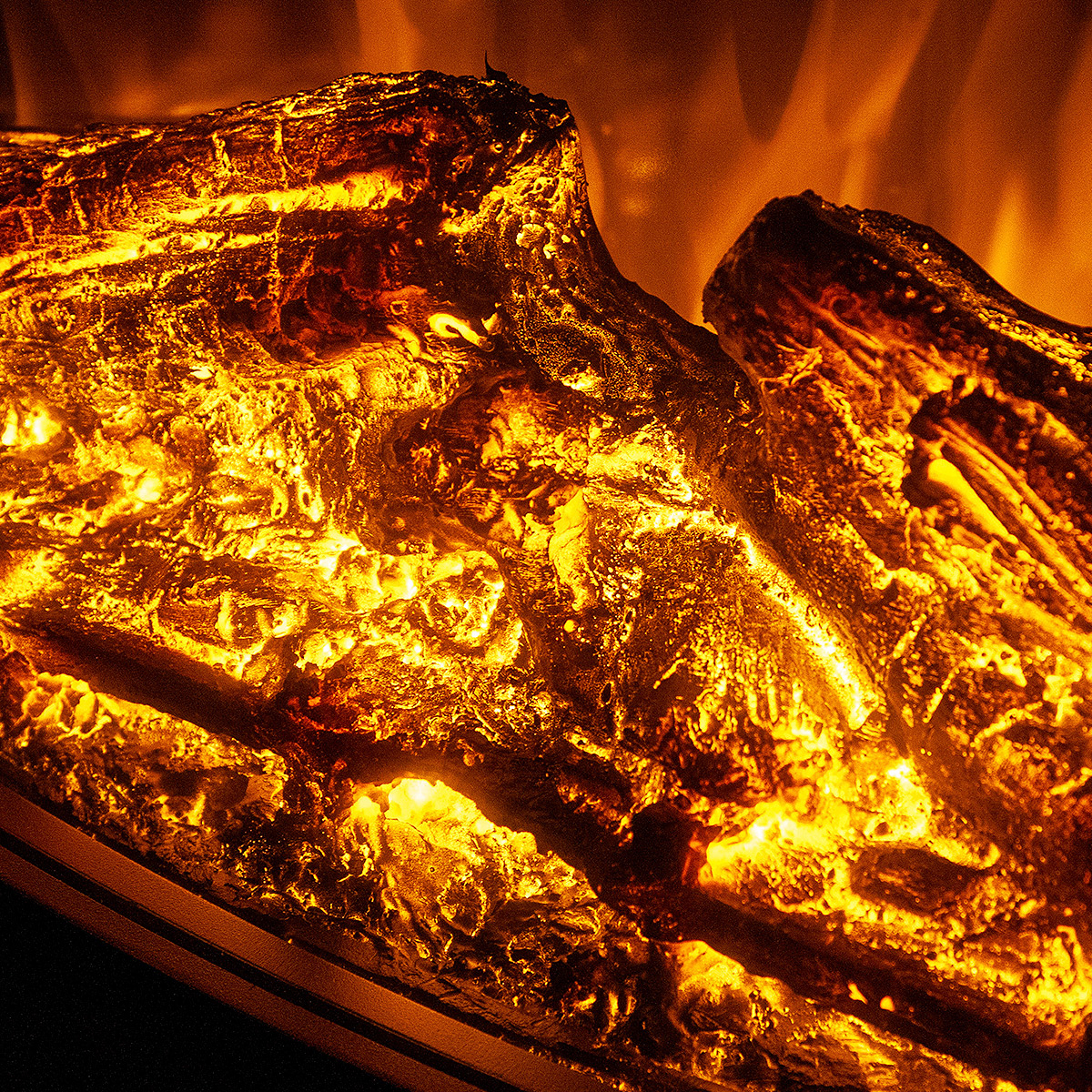 This electric fireplace is stylized like an old stove, with metal teeth in the front, the logs inside it offering a unique design. Such a fireplace will come as a stone portal and can be adjusted with the help of the remote control, giving you the desired comfort. In addition to the realistic appearance of the fireplace itself, this model has the function of burning sound of logs.