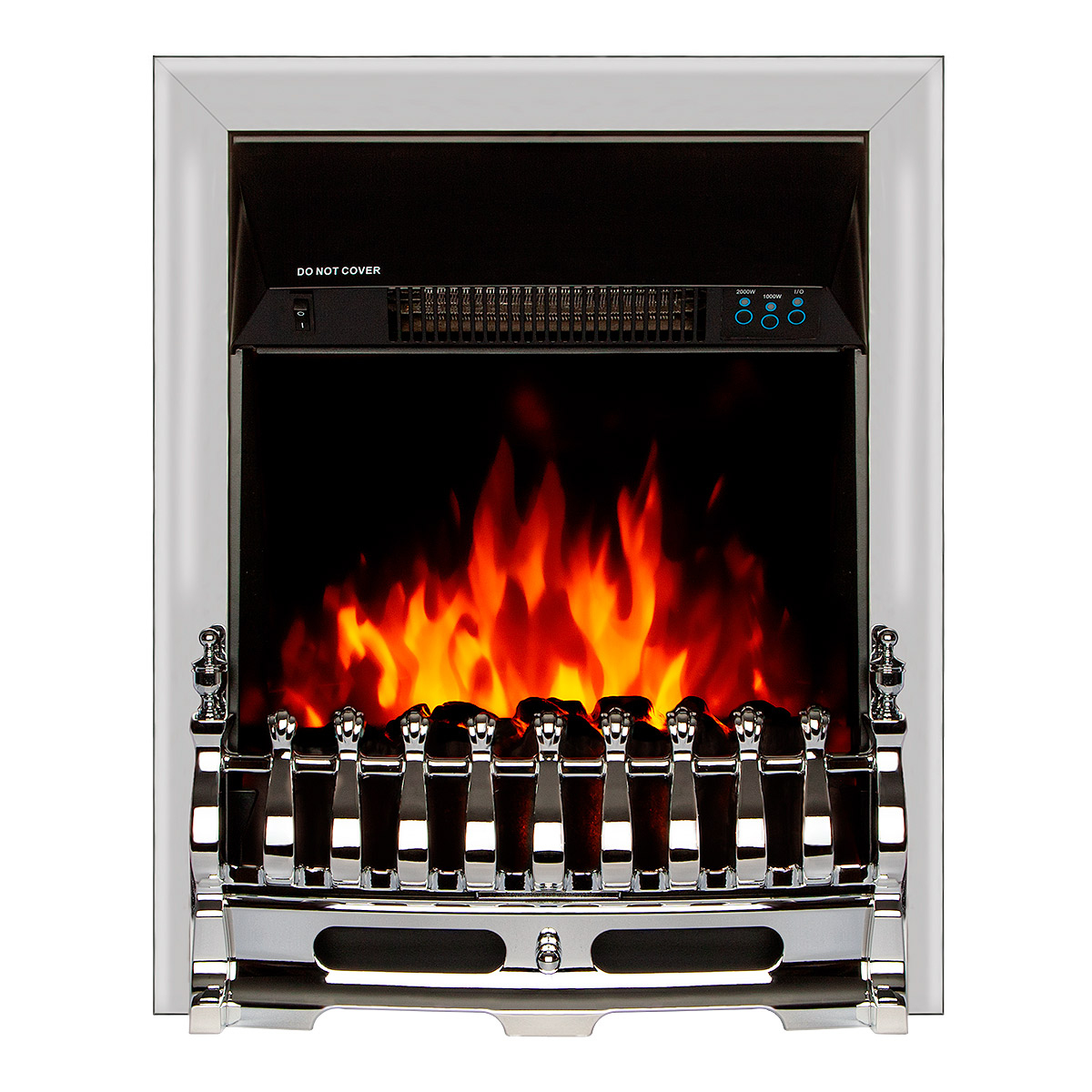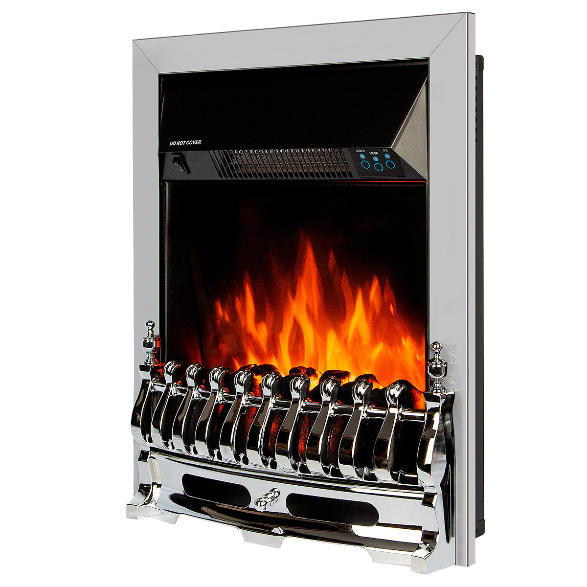 Modern Galileo silver electric fireplace with realistic flame effect, which can easily decorate your living room, bedroom or cafe. This model can be placed in the portal, embedded in the wall or in any other place, at the client's request, allowing a tolerance to the edges of 2 cm for ventilation. The functionality of the electric furnace allows it to operate in two modes: heating mode and decorative mode. The heat is distributed throughout the room, using a silent convector. This model is quite economical, its maximum power is only 2 KW. Another attractive option is the LED backlight. The Galileo silver electric fireplace will warm you in the cold winter and give you a romantic atmosphere on summer evenings.